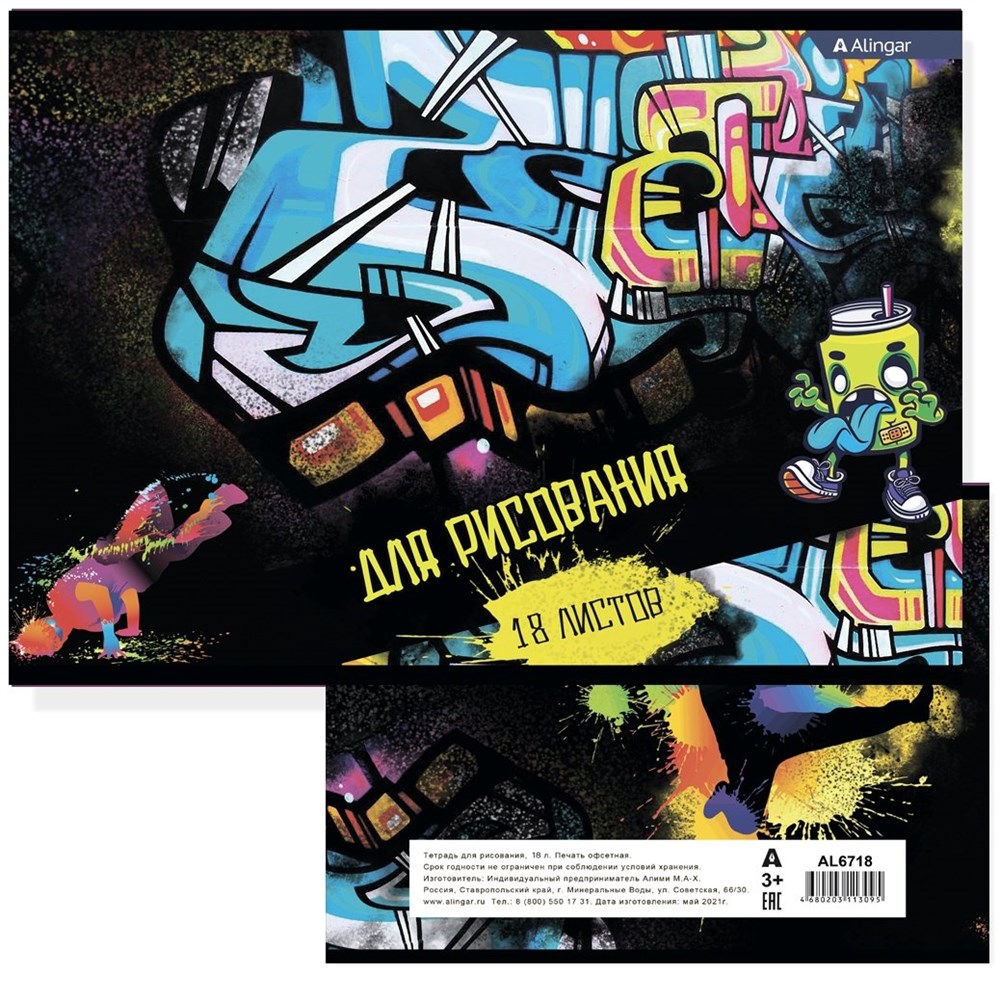 Альбом для рисования 18л А4 Графити Alingar