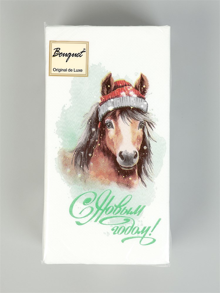Салфетки новогодние 50шт 1 слой 24*24см Лошадка со снежинками