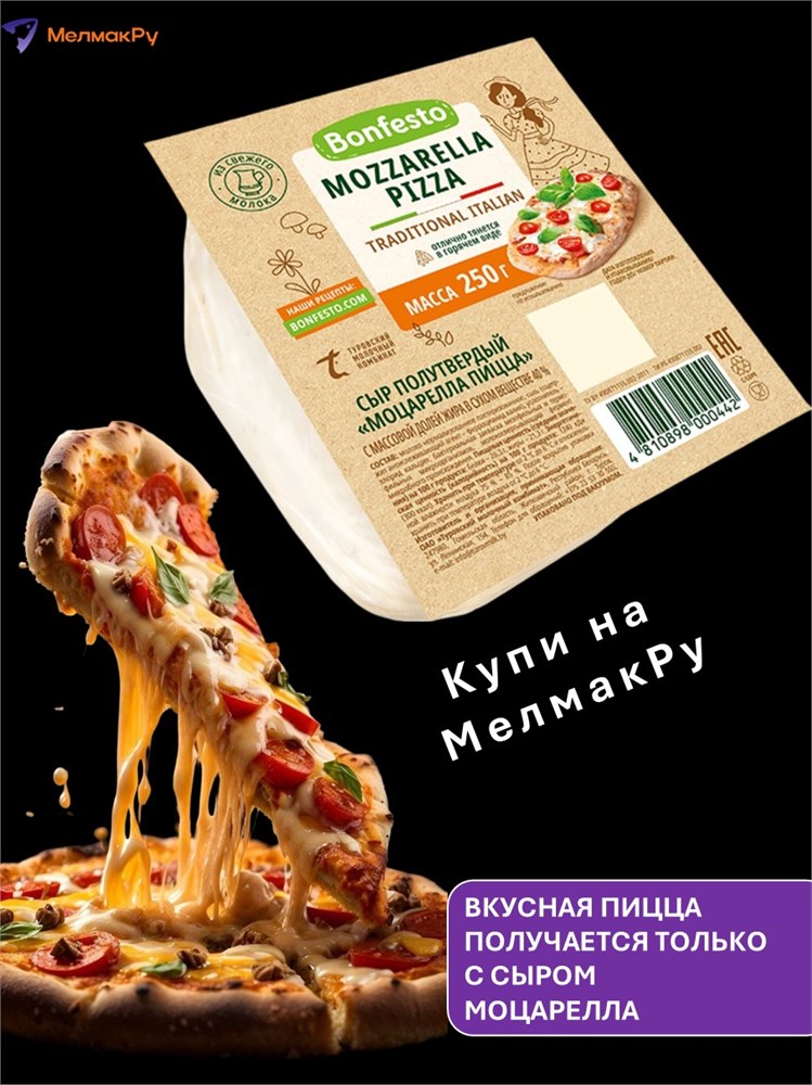 Сыр Моцарелла Bofesto Пицца 40% 250гр без ЗМЖ